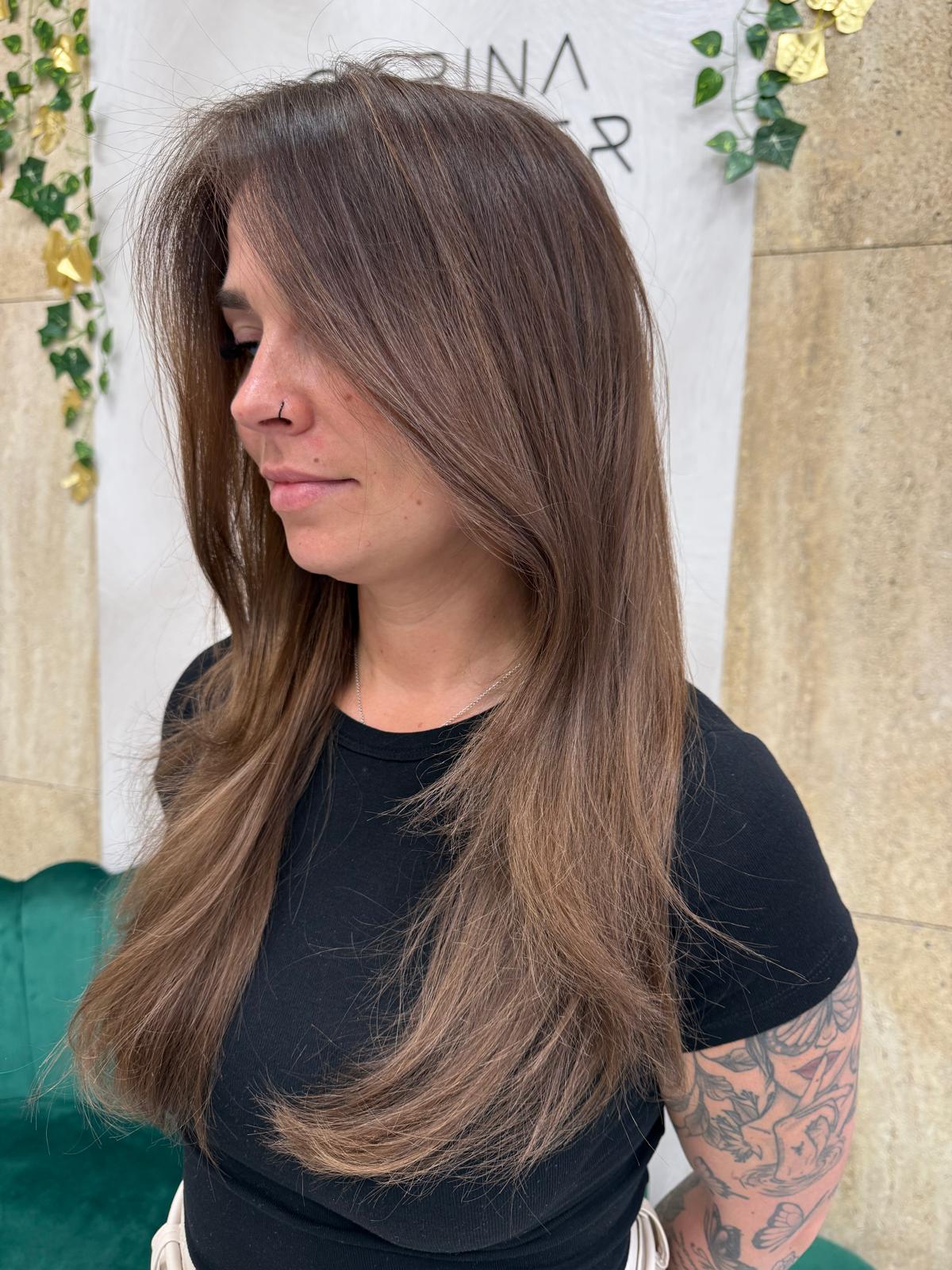 Specializace na prodlužování vlasů technikou keratin a NanoTape – vlasové pásky, regeneraci a rekonstrukci vlasů a různe techniky barvení.